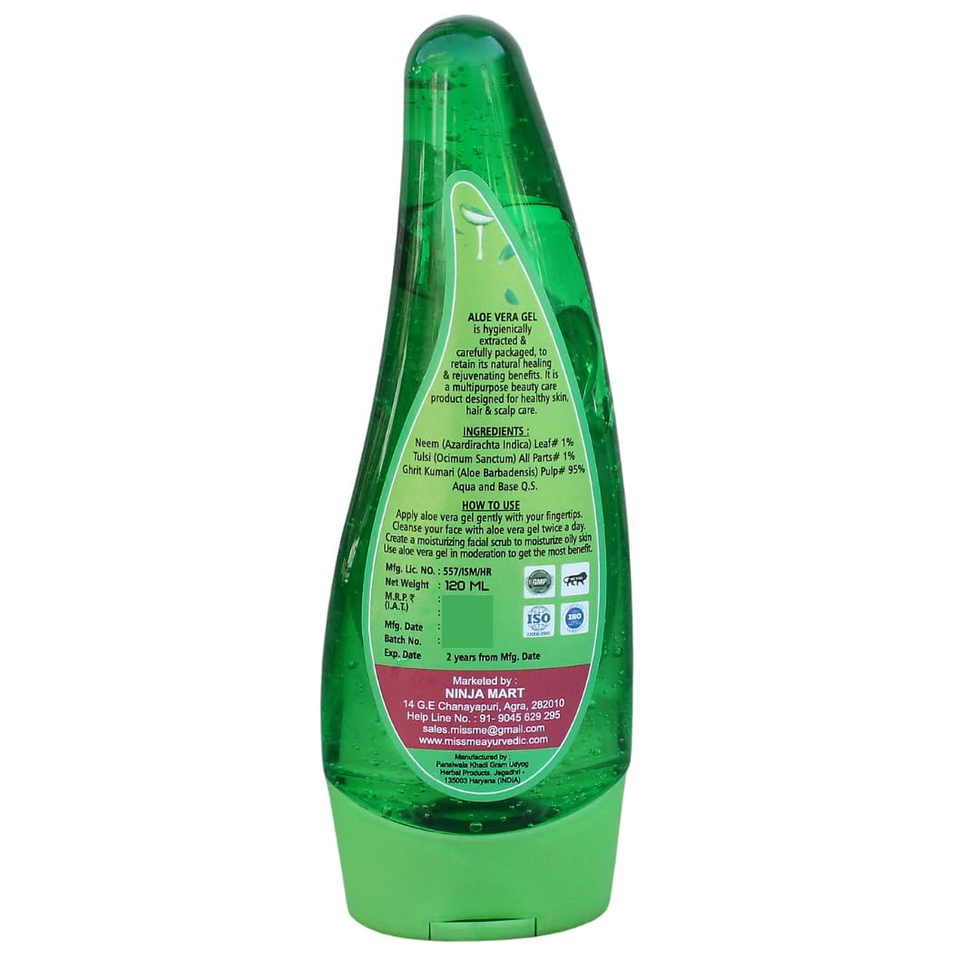 Soothe, hydrate, and heal your skin with Miss Me Ayurvedic Aloe Vera Gel, enriched with the pure goodness of natural aloe vera and Ayurvedic herbs. This lightweight, non-sticky gel deeply moisturizes the skin, calms irritation, and promotes a clear, healthy glow. Ideal for all skin types, it helps reduce acne, sunburn, and dryness while restoring the skin’s natural balance. Also suitable for hair care, it nourishes the scalp and promotes soft, shiny hair.