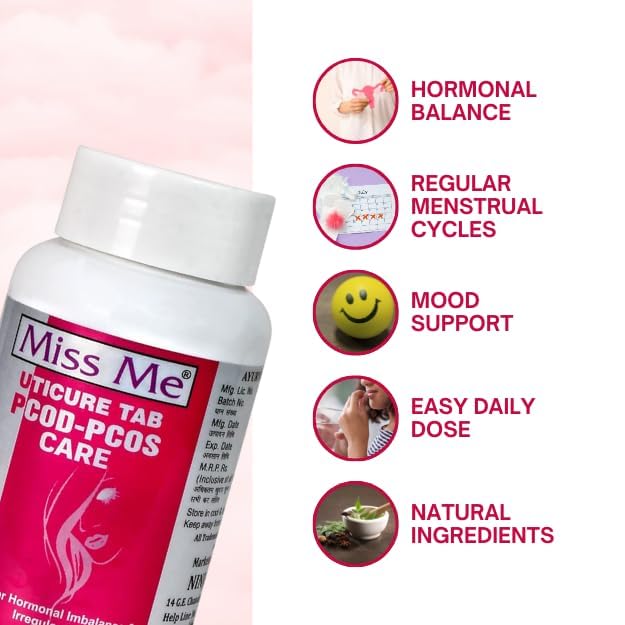 - MISS ME PCOS/PCOD CARE, FOR REGULAR CYCLES : MISS ME PCOS/PCOD Care a plant-based, science-backed supplement. Powered with Shatavari, Ashwagandha, Kanchnar, Manjishta, and Gokshura to restore hormonal balance and reverse associated effects of PCOS/PCOD, viz. diabetes, weight gain, infertility, acne or excessive facial hair in addition to fighting fibroids and boosting ovulation.